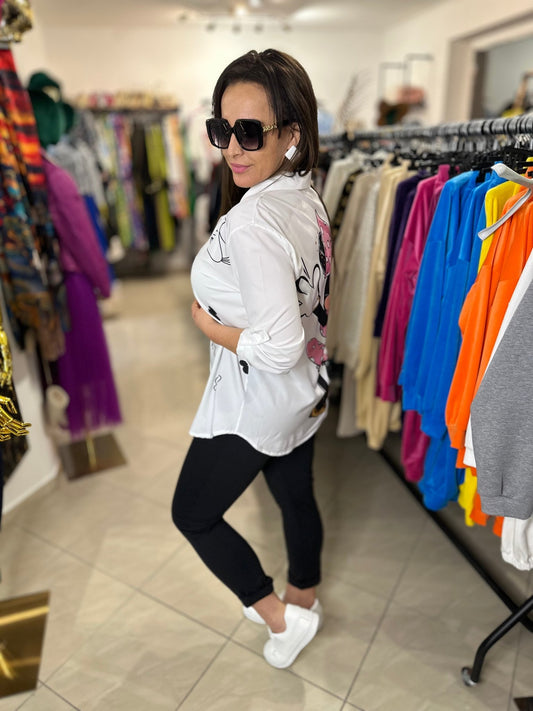 MICKEY MINNIE fekete fehér pink mintás ing / felső
