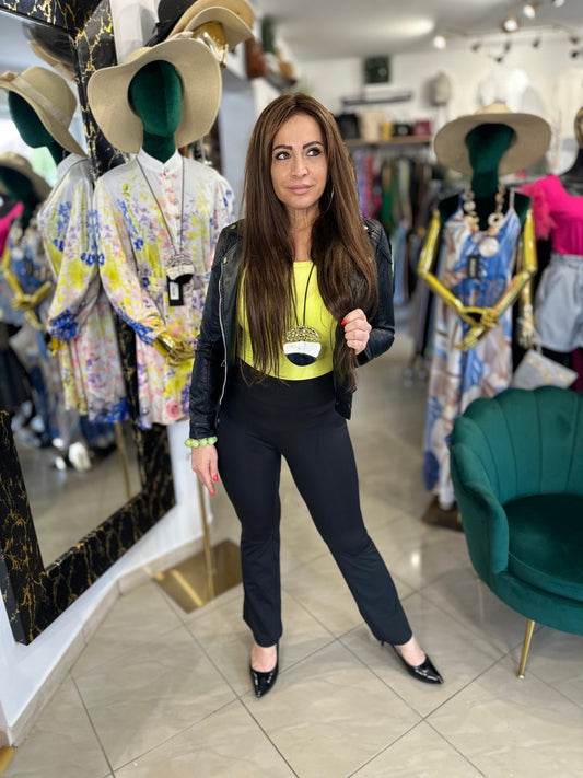 TORINO fekete elasztikus nadrág kosztüm szett övvel